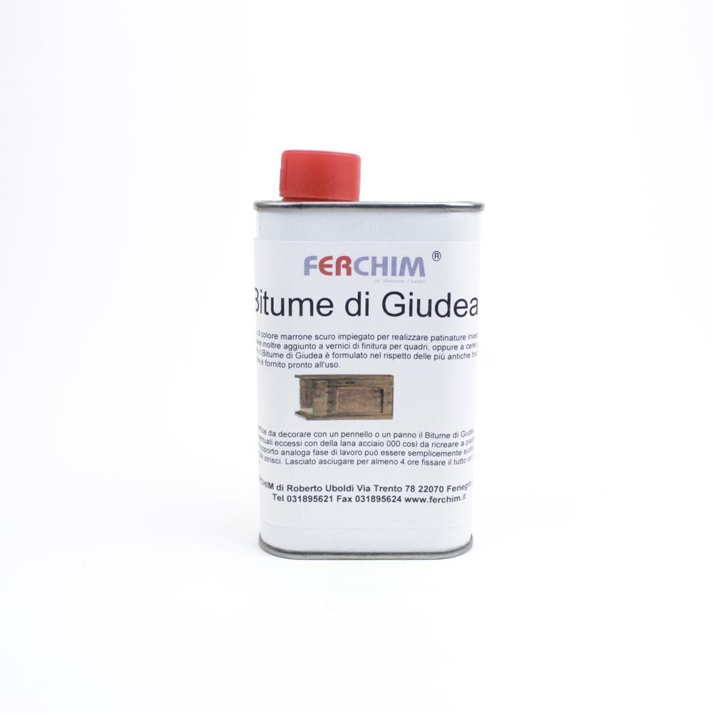 Liquido denso dal colore marrone scuro impiegato per realizzare patinature invecchianti su qualsiasi superficie decorata. Può essere inoltre aggiunto a vernici finali per quadri o a cere per mobili per ottenere un effetto antichizzato. Il Bitume di Giudea è formulato nel rispetto delle più antiche tradizioni dei restauratori mobilieri. Pressoché inodore, pronta all'uso